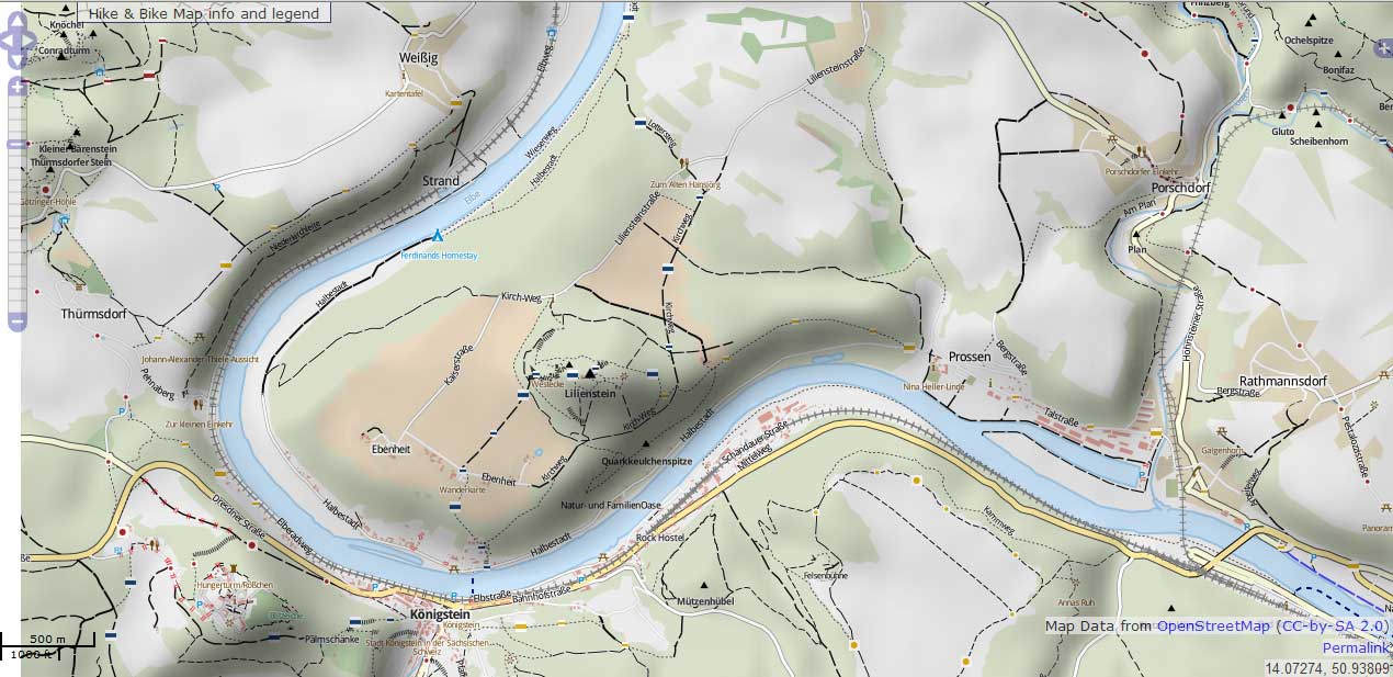 Fig. 1 ¹: Karte für Wanderer und Radfahrer, mit Hillshade-Layer: www.hikebikemap.de