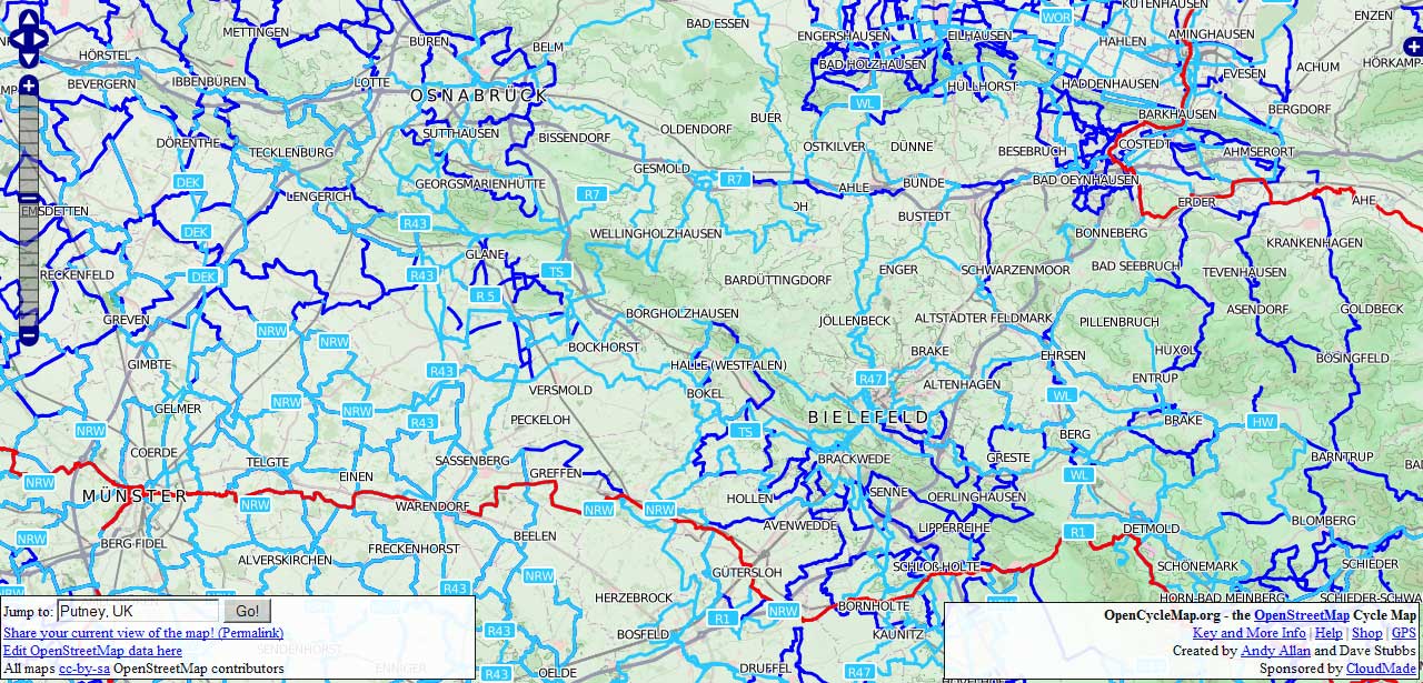 Fig. 1 ¹: Fahrradkarte: Fahrradwege, Radwanderwege, Höhenlinien: www.opencyclemap.de